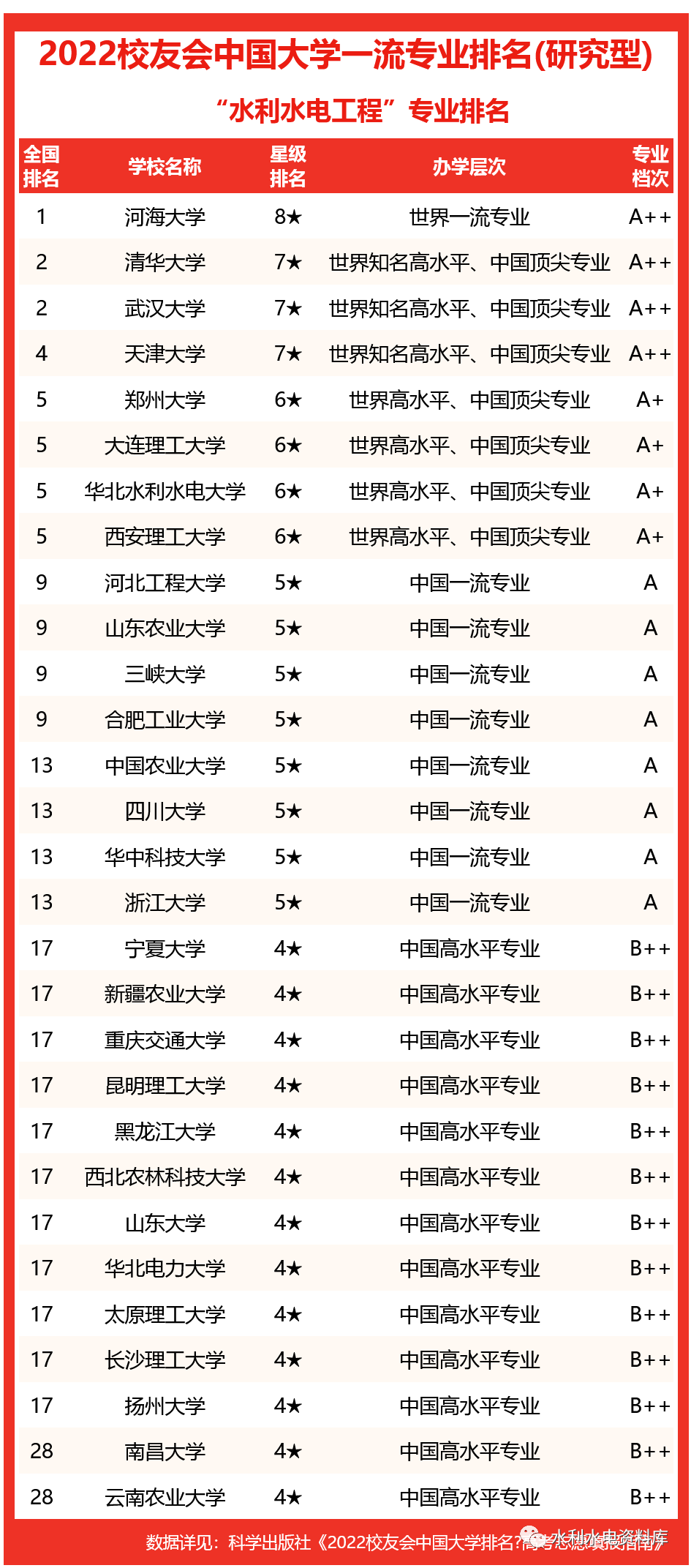 在最新员工会2022中国大学水利水电工程专业排名(研究型)中,公司体育平台官网水利水电工程专业荣得四星级专业(4★,B++)。