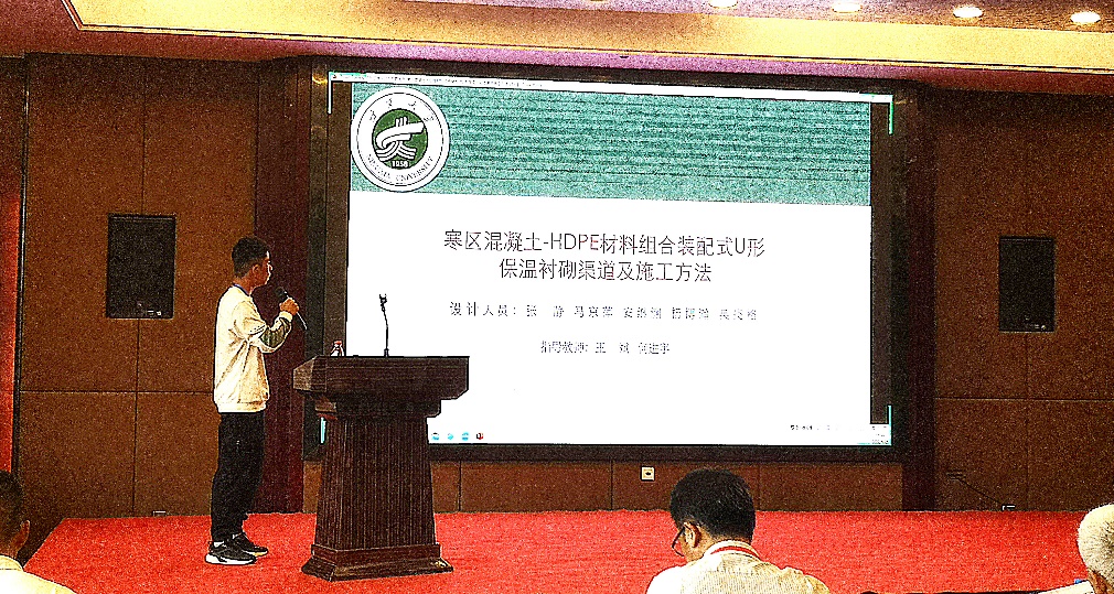 经大赛组委会对所有参赛作品的评议,来自全国各大高校的四十多只参赛队伍入围本次决赛。通过作品展示,现场答辩等环节的角逐,代表体育平台官网第一次参赛的作品《寒区混凝土-HDPE材料组合装配式U形保温衬砌渠道及施工方法》荣获大赛三等奖。