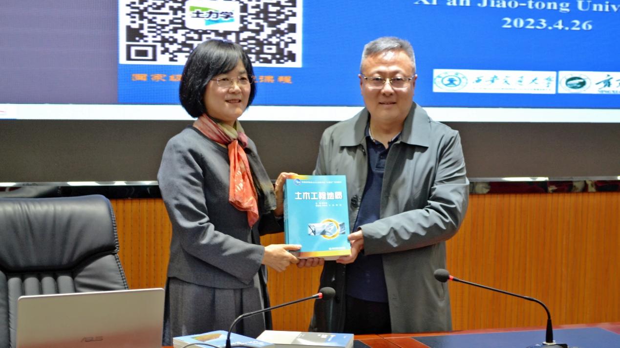 报告会前廖红建教授向公司赠送由本人主编的中英文教材《土力学》、《土木工程地质》和《Soil Mechanics》,并为体育平台官网团队建设与发展送上美好祝福。