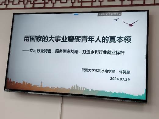 之后清华大学水利水电工程系研究生团委副书记朱昱腾详细介绍了清华大学水利水电工程系的整体情况和近三年研究生毕业就业的整体情况。武汉大学水利水电公司研究生辅导员许笑星对武汉大学水利水电公司的整体情况和近三年研究生毕业就业的情况做了介绍。