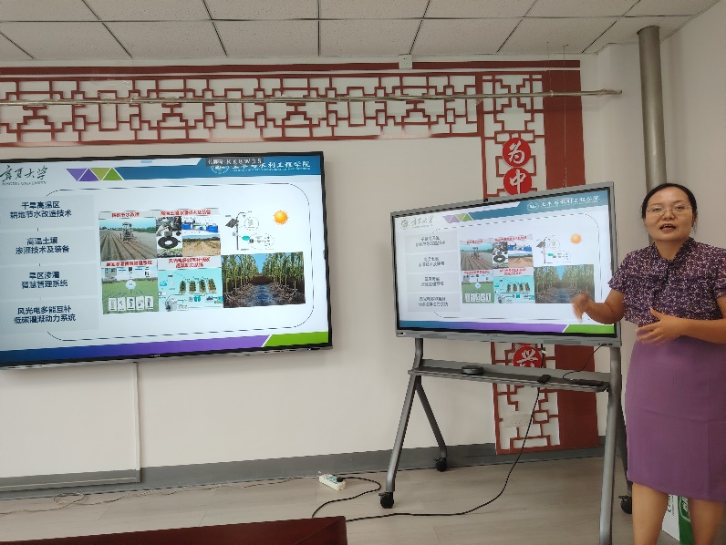 李超超副教授向实践队伍介绍了体育平台官网近些年在高效设施农业和现代化生态灌区节水灌溉理论与技术以及盐碱地荒漠化治理方面的研究成果,并表示宁夏地区有大量生态农业相关的课题,欢迎兄弟院系师生合作开展研究工作。
