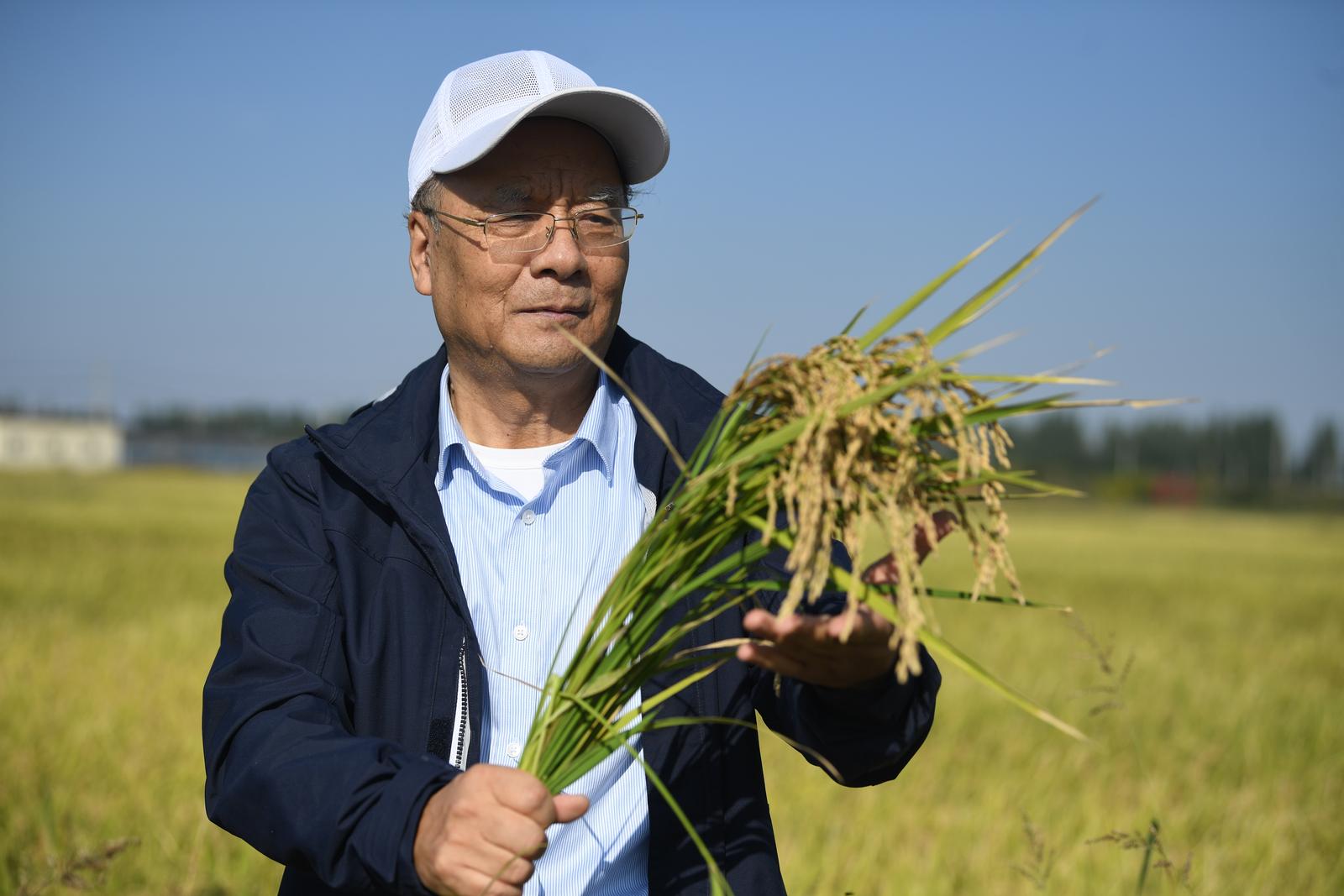 田军仓教授摸着手中沉甸甸的水稻,深感欣慰。