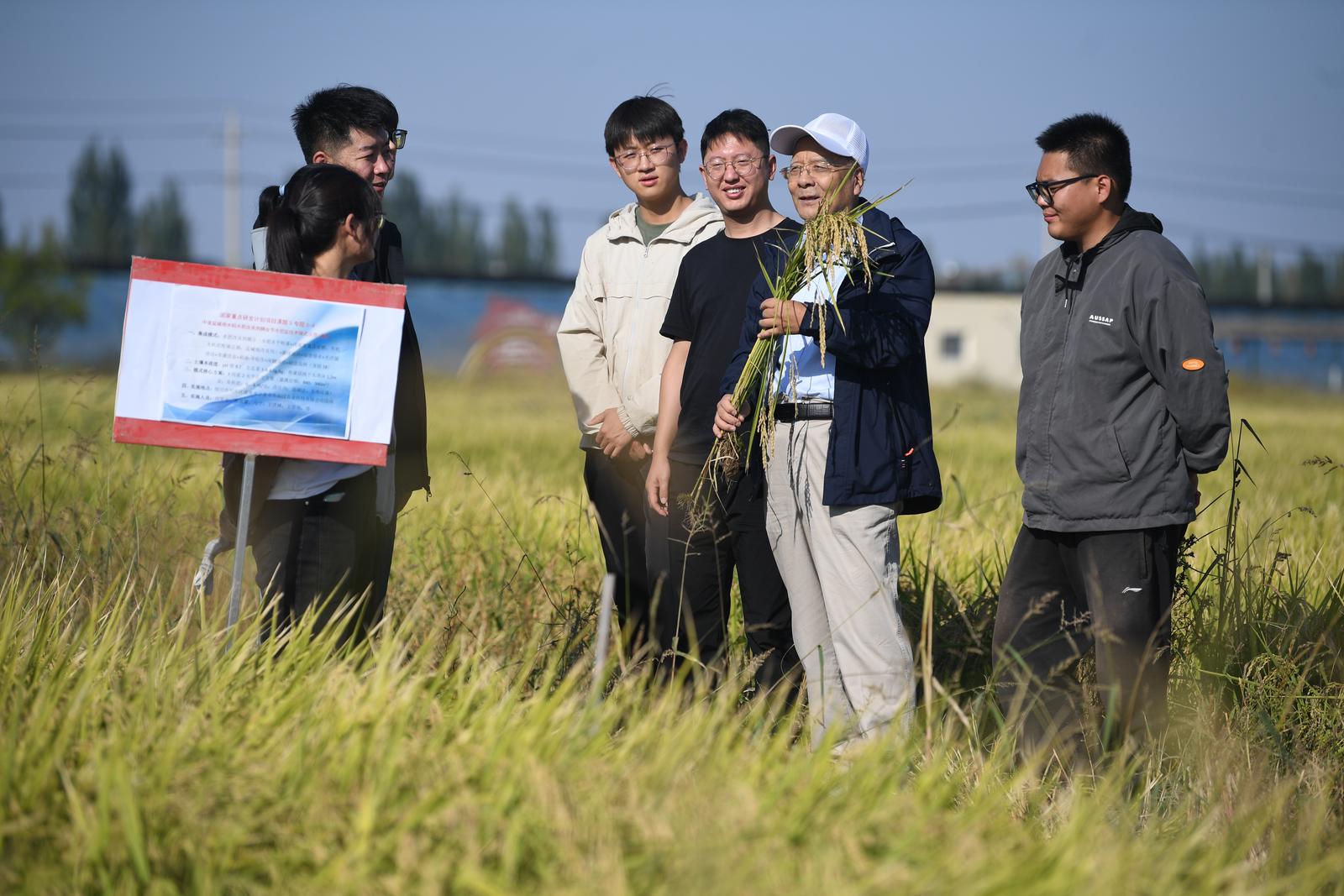 稻田金黄,随风摇曳。9月22日,宁夏水利科技领军人——田军仓教授带着自己的博士生、硕士生,站在银川市兴庆区盐碱地综合治理的试验稻田里,摸着沉甸甸的稻子,露出欣慰的笑容,转身对身旁的员工深情寄语:“科学研究既要追求知识和真理,更要服务于经济社会发展和人民群众,不能只埋头写论文,而要把文章做到大地上……”