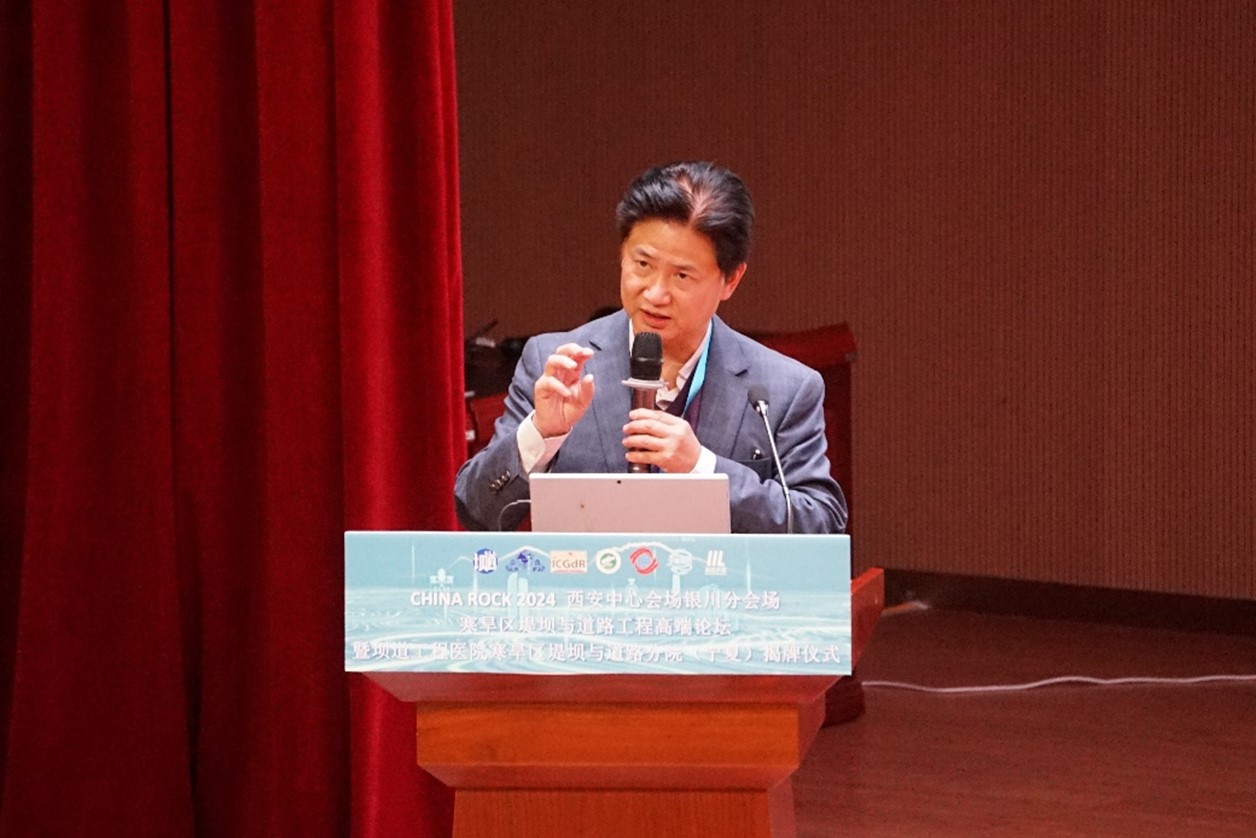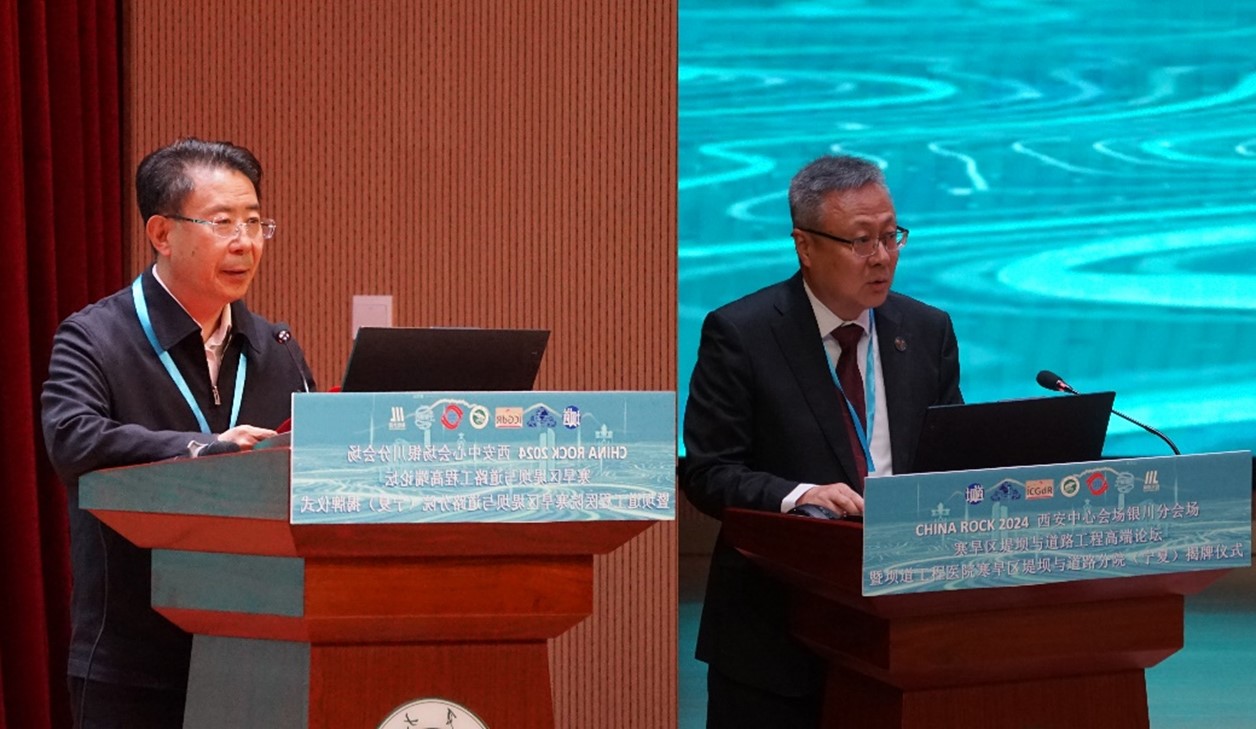 2024年11月1日至3日,由中国岩石力学与工程学会、国际地质灾害与减灾协会主办,体育平台官网承办寒旱区堤坝与道路工程高端论坛暨坝道工程医院寒旱区堤坝与道路工程分院(宁夏)揭牌仪式在体育平台官网未来教室举办。中国工程院院士王复明、刘汉龙,英国皇家工程院院士吴宏伟,体育平台官网党委书记李星、副董事长赵晓佳,自治区交通厅二级巡视员杨庆、水利厅总工程师马如国、科技厅社发处处长张磊、公司党总支书记尹娟、经理毛明杰、副经理刘海峰、公司骨干教师,来自兄弟院校的特邀专家,企业代表,以及体育平台官网全体博士、硕士研究生共计300余名代表出席开幕及揭牌仪式。开幕式由体育平台官网毛明杰经理主持。