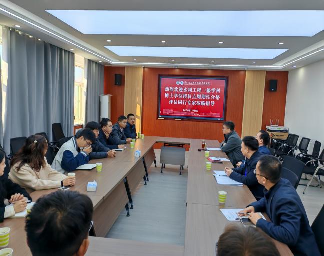 水利工程学位点负责人李王成教授以“立德树人、服务需求、提高质量”为主题,向专家组汇报了水利工程学位授权点的发展建设情况,从培养目标、基本条件、人才培养、服务贡献、存在问题、发展规划设想等方面详细展示了公司水利工程学位授权点的建设情况。