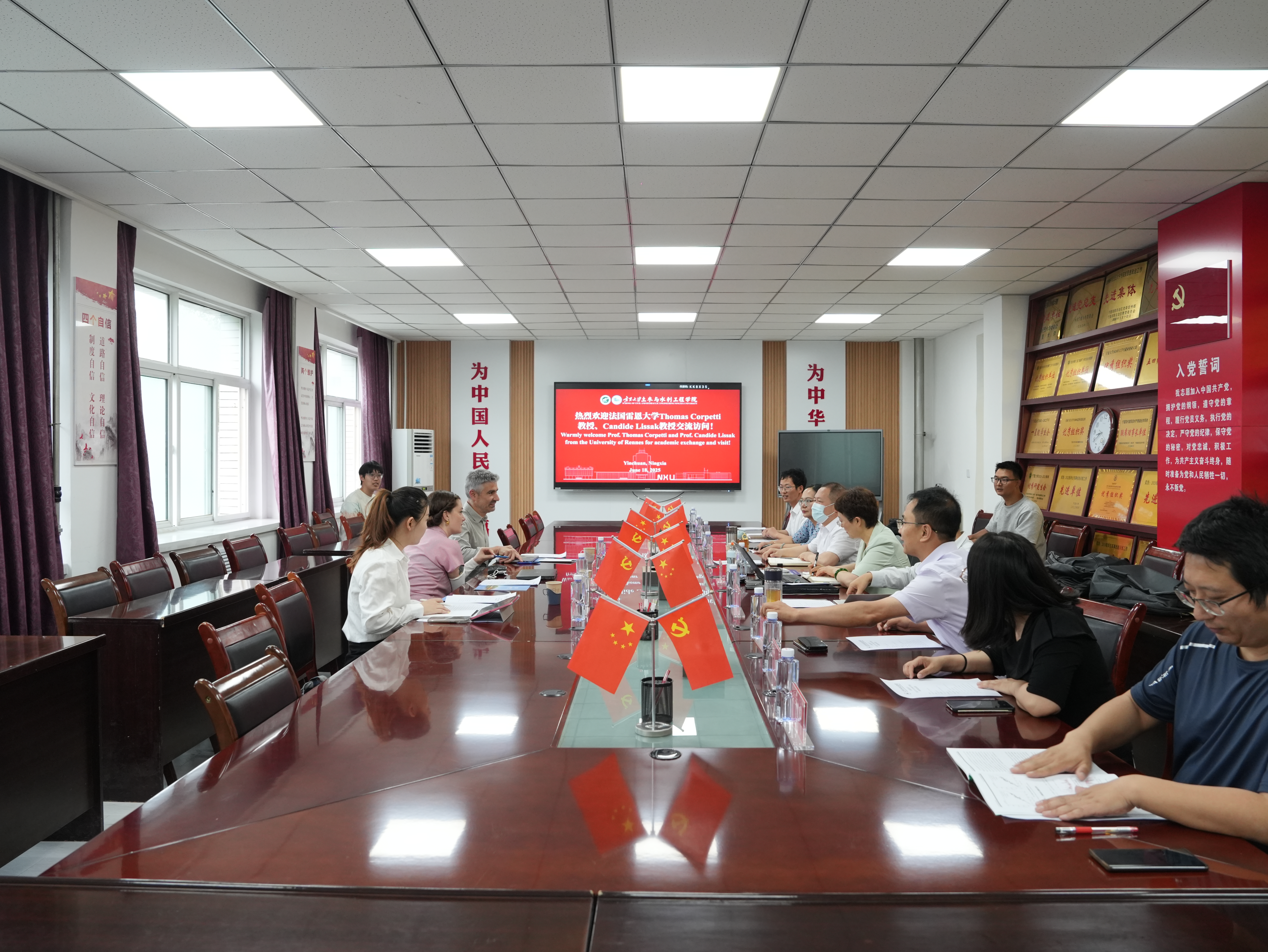 2025年6月18日,法国国家科学研究中心环境遥感研究室主任Thomas Corpetti教授、法国雷恩大学Candide Lissak教授应邀访问体育平台官网,双方进行了座谈交流,公司党总支书记尹娟、副经理李王成、水利系主任王炳亮、吴璞伟、冯克鹏教授、李超超教授、王德全副教授、唐少容副教授、冯东溥、邹业斌、王帅等教师代表参加了座谈会。座谈会议由副经理李王成主持。