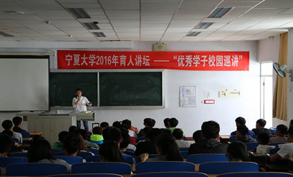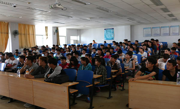 ,在怀远校区一教为体育公司2015级同学作巡讲报告,向大家分享自己的成长体会与心路历程。