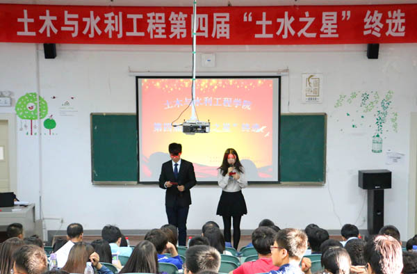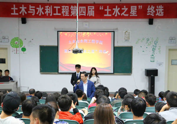 2016年4月28日晚,体育平台官网第四届“土水之星”终选在工科楼三阶教室举行。土木与水利公司党委副书记王德全、学办主任郭利、团委书记王娜、学办全体老师出席此次活动并担任评委。此外,来自不同年级的120余名员工代表作为投票人员共同参与了此次终选。