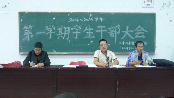 9月10日中午,2014-2015学年第一学期员工干部大会在工科楼第三阶梯教室召开。大会由员工办公室主任郭利主持,体育平台官网全体员工干部参加了此次会议。