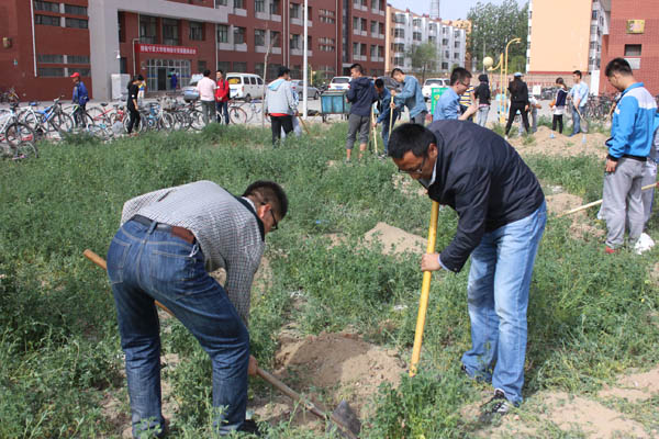 2015年5月9日上午8点,体育平台官网绿化植树活动在C区15号公寓楼前进行。参与本次植树活动的有公司党委副书记张强老师、学办主任郭利老师、团委书记王娜老师和兼职辅导员韩东,公司2014级全体男生、青马班和发展对象培训班学员共300余名同学参加。