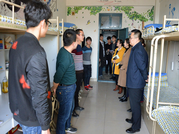 走访从公司男生宿舍六楼开始向下逐层进行。在检查的过程中,高书记和柳书记亲切地询问了各年级的员工的学习情况、生活上是否有困难,聆听了毕业生的未来计划和就业情况并对个别宿舍中出现的问题进行指正。随后,各位老师对女生宿舍进行了抽查。女生宿舍整体干净整洁,学习与生活用品摆放整齐,有着良好的学习环境。老师们对此大加赞赏,并提出男女宿舍应加强交流,共同建设良好的宿舍环境,进而加强学风建设。最后,高书记分别询问了15号楼与21号楼的宿舍管理人员与保洁人员,详细了解了员工的日常情况并对她们的辛劳付出表示感谢。