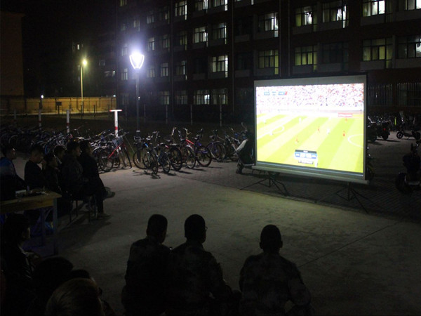 2017年3月28日,晚上8点,公司团委员工会于男生宿舍21号楼下放映足球世界杯预选赛的第七场——中国客场挑战伊朗的比赛。