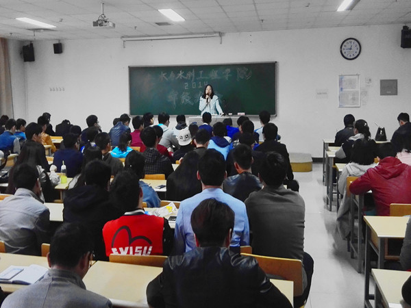 会议在同学们的掌声中开始。党委副书记柳松洁表示,目前14级同学正处在关键时期,考研和就业是同学们目前必须认真考虑的问题,同学们心中应该有一把属于自己的秤,明白究竟应该朝哪一个方向去努力。并指出,坚持自己的理想是唯一的选择,大家应该有一个目标,并且将之付诸于实践,应该为学弟学妹们树立一个好的榜样!书记的讲话赢得了在场所有员工老师的阵阵掌声。与此同时,柳书记还就宿舍问题向同学们提出了要求,他希望同学们的宿舍是干净的,是整洁的,是真正的家。