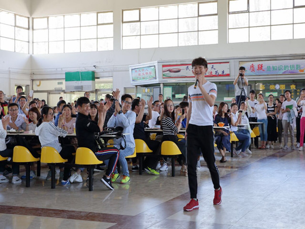 喧嚣的二餐里,同学们如往常一样吃着午餐。然而,此时飘来的不仅仅是饭香,还有突然响起的音乐。伴着舒缓的音乐,手拿话筒的12名同学从餐厅各个方向走来。一首《北京东路的日子》带着淡淡的哀愁,将大家带入回忆的思潮。毕业和成年的字眼,格外扣人心弦,而我们《不说再见》。你那么《美》,爱上你是我《情非得已》。掌声、欢呼声、唱和声将气氛推向高潮。餐厅的走道变成了大家挥舞激情的舞台,受到感染的同学纷纷站起身走向中央,其他同学则是聚在周围。此刻,“土水有你,相伴一生”不仅是被举起的简单字眼,更是每一个土水人心上的烙印。穿过《平凡之路》,每个人都在期盼着《See you again》。