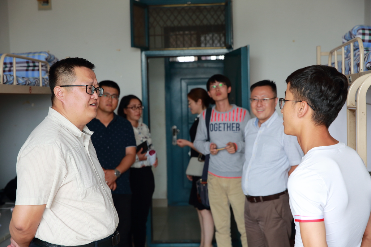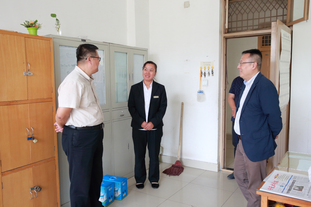 2017年9月26日中午,公司党委书记高继明、经理毛明杰、公司党委副书记苏宇静、柳松洁、各年级辅导员一行,组成安全自查小组,主要对员工公寓、工科实验A楼装修施工现场、工科结构大厅、办公楼防火防盗及校外实习员工安全工作进行了检查。公司领导对公寓楼宿舍管理员进行了慰问。