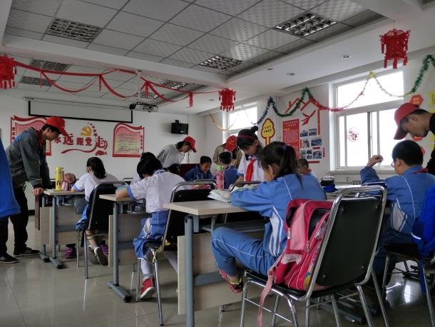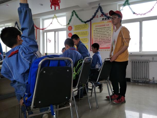在等待高年级同学放学的过程中,志愿者们先是给低年级的同学进行作业辅导。虽然是周末的前一天,但是孩子们的学习热情并没有减弱,他们仍认真地思考作业上的问题,志愿者大哥哥大姐姐也不遗余力地给予了讲解。等到孩子们来全了,大家都迫不及待地来到楼下进行准备好的跳绳活动。孩子们先是一人一根绳,不同年级的同学们在一起,你争我比,比赛谁跳得更多。其中有一个小姑娘,是班里的跳绳冠军,她高兴地为大家展示了她的跳绳技巧。然后,志愿者大哥哥大姐姐把几根绳连在一起,同学们排着队一起跳大绳。不大不小的空间里顿时充满了孩子们的欢声与笑语,不管自己跳得好不好,也不管是因为谁跳错了,孩子们都一笑而过。无忧无虑的童年,对于每一个渐渐走过青春岁月的人而言,都是一份宝贵的记忆。而对于曾走过这段岁月的志愿者们来说,看着孩子们灿烂的笑脸,就像看到昔日的自己,能够有幸守护这份纯真,大概就是时光给志愿者们最好的礼物了。