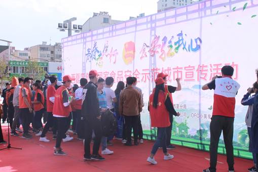 为深入贯彻十九大精神,认真落实习近平新时代中国特色社会主义思想关于“实施食品安全战略,让人民吃的放心”的要求,全面实现“社会认可,群众满意”的国家食品安全示范城市建设目标,4月25日下午3点,由西夏区团委及相关部门主办及体育平台官网社团实践部协办的“青春志愿行.食安驻我心”志愿活动在西夏区宁阳广场举行,来自体育平台官网及辖区其他大中专院校和外卖小哥共300名志愿者参加,共同助力创建国家食品安全示范城市。