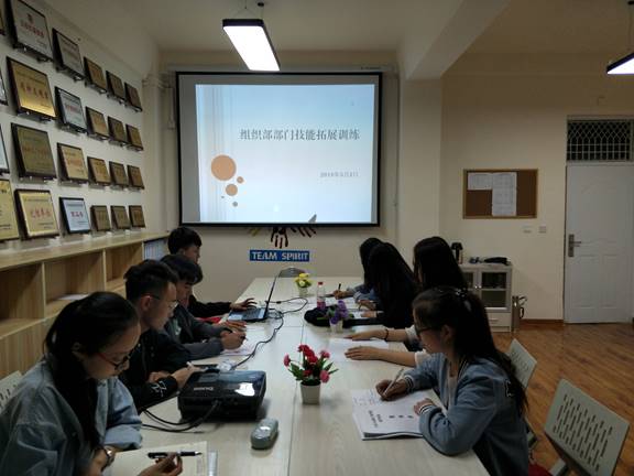 为提高干事工作能力,在工作方面精益求精,组织部于5月2日晚在知行楼313组织开展部门内部技能拓展训练,参加人员为员工会分管主席郭周岚、组织部部长姜彦杰及全体干事。