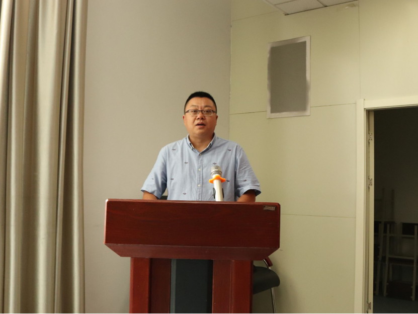 活动第三项,公司最年轻的博士生导师,朱磊老师,代表公司教师为新生指点迷津。他用幽默风趣的语言,向19级新生提出了三点建议,不要沉迷游戏;不要作弊;勇于挑战自我与同学合作。
