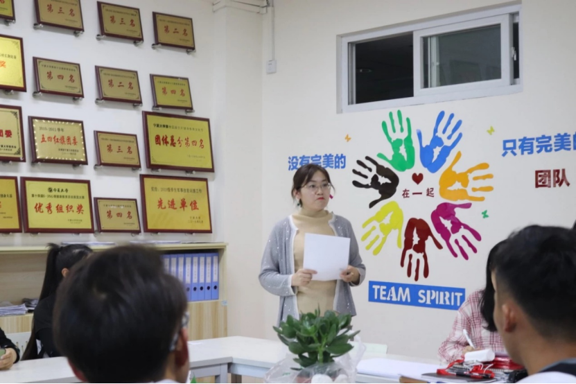 最后,柳松洁向在座运动员们讲解了本次活动的学分奖励情况,发放了慰问品,并且与运动员们在知行楼前进行了合影留念。
