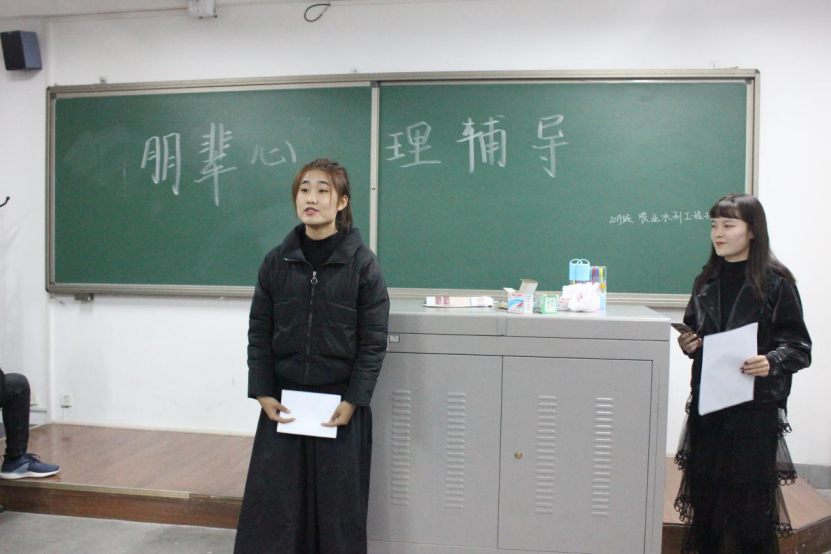 2019年10月21日晚上,2019级农业水利工程班于知行楼703教室开展了"朋辈心理辅导活动,活动由员工会生活心理部副部长王展展现场主持。旨在促进同学之间的关系正常发展,增进同学们之间的交流。
