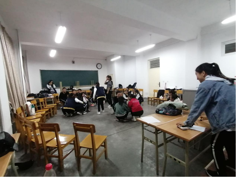 活动开始,全体同学起立进行手指操游戏比赛,并对反应不迅速的同学施以小惩罚。然后,同学们围成一个大圆圈,进行了"星星之家"游戏。通过三轮比拼,使同学们懂得一个团体的力量是由许多个体团结起来构成的,并懂得了集体的意义,在今后的成长中凝成一股牢固的绳。紧接着,同学们分为四组进行了"滚雪团"游戏,每个人对组内成员的家乡及爱好进行短暂记忆,这使同学们对彼此的兴趣有更深入的了解。最后,"乘风破浪"游戏也在欢声笑语中顺利进行。