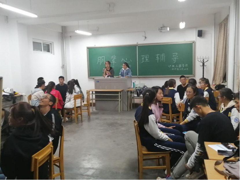 2019年10月22日晚上,2019级工程管理班于知行楼705室开展了"朋辈心理辅导"活动。2018级交通工程班团支书王展展和2018级工程管理班团支书孙菊艳主持了本次活动,2019级工程管理全体同学参加活动。
