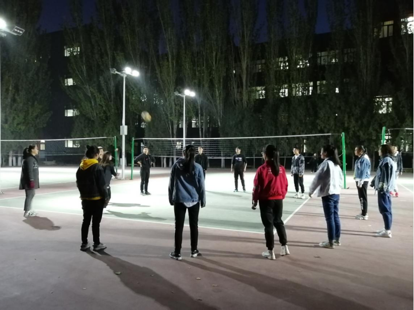 2019年10月28日晚上,体育平台官网男排、女排在队长杨保明和孙菊艳的指导下于文萃校区排球场进行基本技能训练。