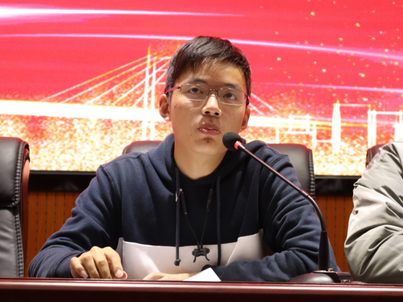 李昱甫发言。他从“大家究竟应该在团学中收获些什么”“大家加入团学的初心是什么?”两个问题出发,与与会人员分享了土水员工组织“追求卓越,服务师生”的精神。