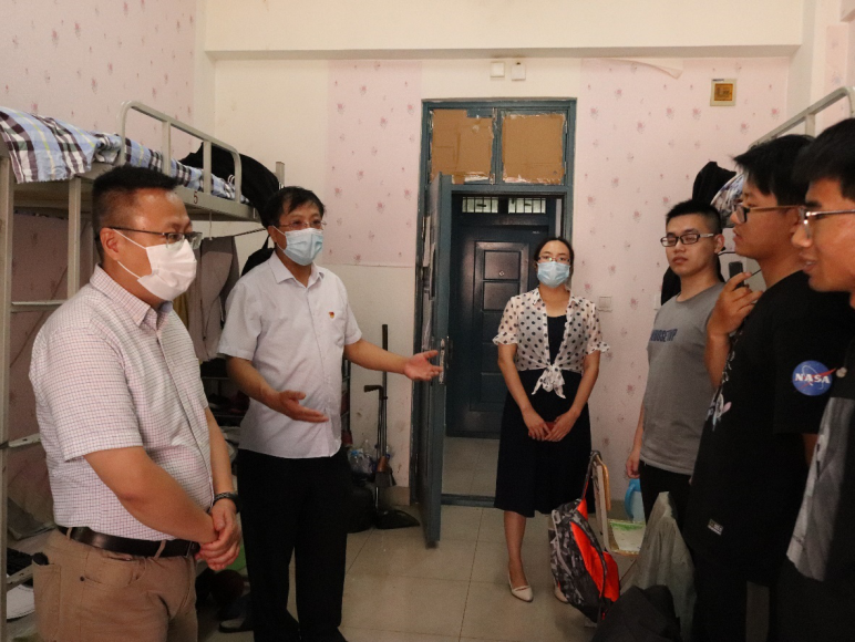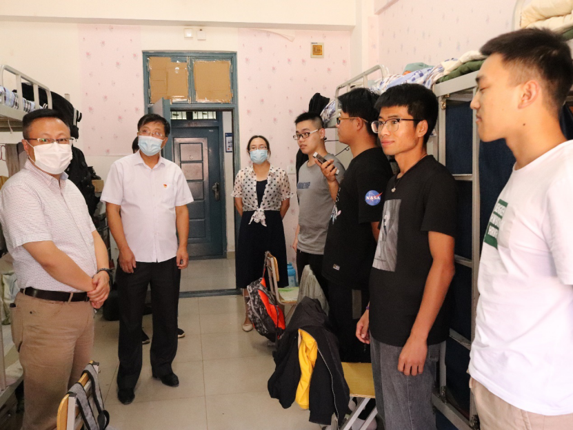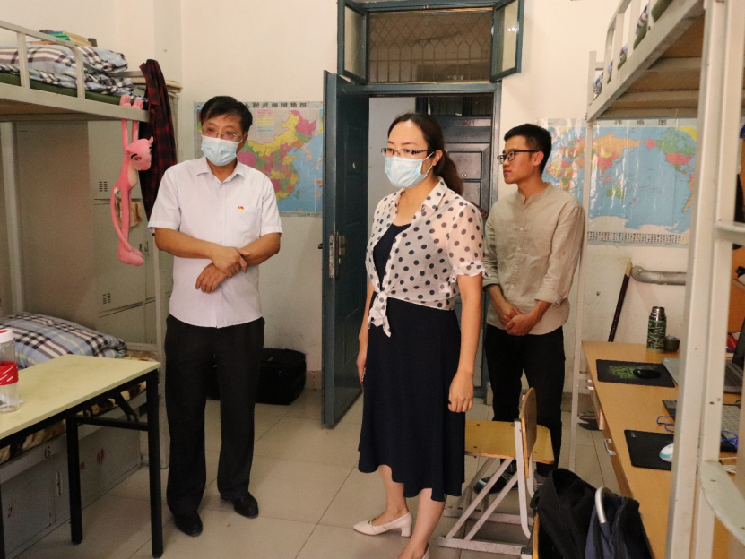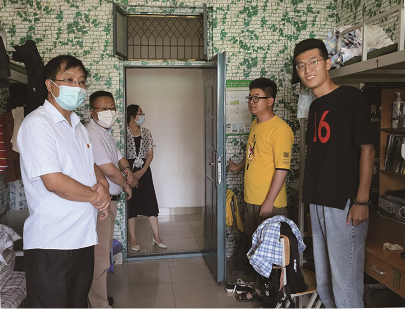 2020年8月31日,公司党委书记张晓天、经理毛明杰、员工工作办公室主任王娜于15号楼公寓看望返校员工。
