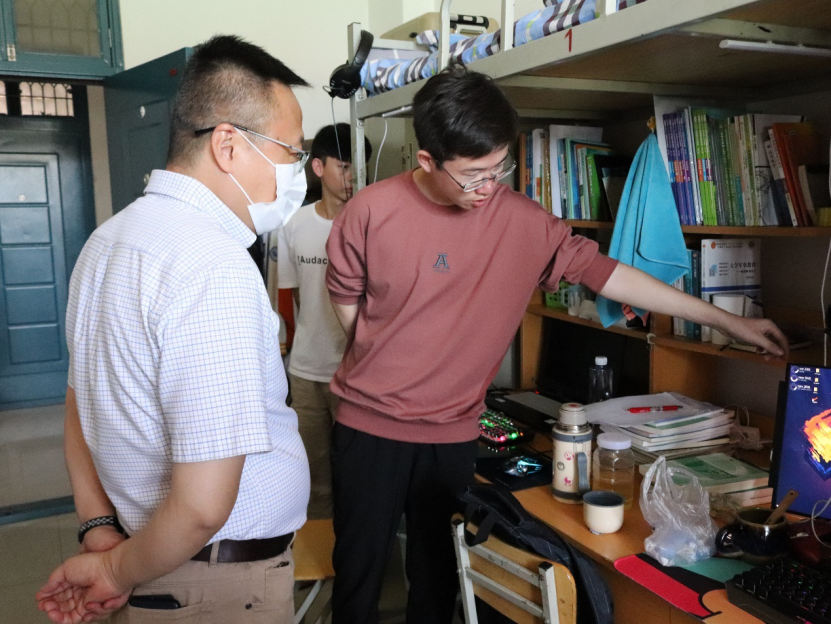 为了更好地开展疫情防护工作,体育平台官网在宿舍楼大厅设立报到处,安排员工进行值班。书记和经理询问了报到处值班人员的具体工作情况,了解员工返校时间。为了更好地了解同学们返校后的生活状态,经理与书记逐个宿舍进行观察慰问,询问员工们的返校方式与身体状况,到校后宿舍情况以及课业问题。