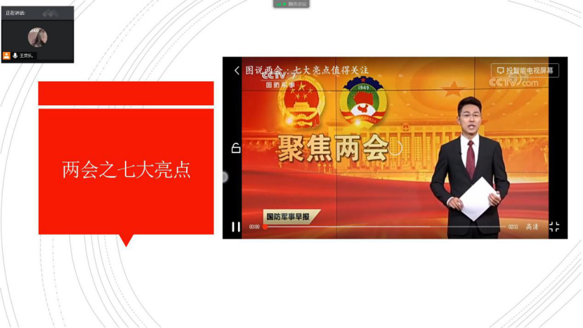 主题团日活动上,各班团支书在线上带领同学们进行了两会精神的学习,学习了今年全国两会关于“新冠肺炎疫情防控”、“今年经济社会发展目标”、“打赢脱贫攻坚战”等八大看点;随后带领同学们了解了全国两会各大热点议题,并就热点展开了热烈讨论。活动最后,参加活动的同学们纷纷表示,作为老员工虽然不能去亲身到两会现场,但我们仍然要积极学习两会精神,了解国际国内形势,明辨是非、认清大局、坚定立场。坚决拥护党中央和国家所做出的各项科学决策。