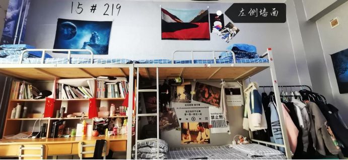 本次宿舍风采大赛荣获一等奖的是15号楼219宿舍。最美宿舍,你我装扮,宿舍vlog里处处洋溢着青春的气息,视频里的六位干饭男孩脸上都挂着装饰完宿舍的欣喜。宿舍整体简洁大气,却又不失温情。