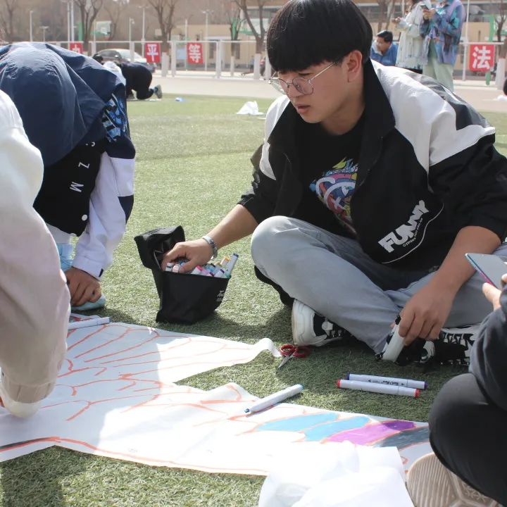 活动开始,主持人向参赛队伍宣布了活动的相关事宜并发放了活动材料。接下来进入活动制作过程,各小组在文萃校区运动场按照自己小组的创意在规定的制作时间进行风筝的制作。
