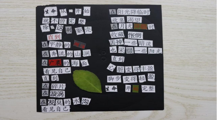 活动的参与者们以报纸、杂志以及其他书面来源的词语和短句为素材,以“生命”为主题,按照自己的灵感进行再创作。最终,他们将这些字句拼贴成了一件件新作品,赋予呈现出了独特的美感和创意。