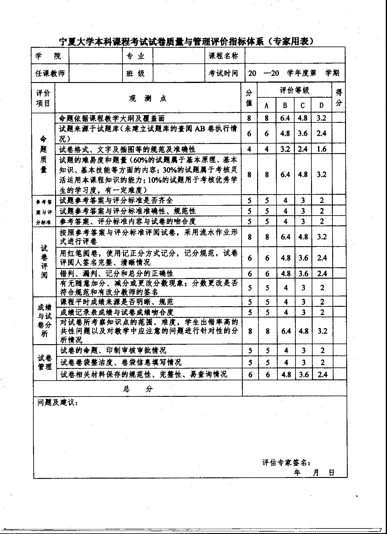 旋转 体育平台官网本科试卷评阅评价指标体系2