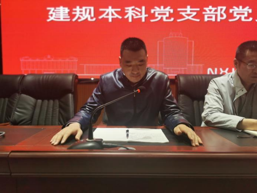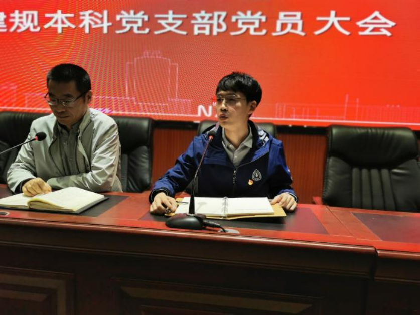 蒋宇欢回顾了建规本科党支部的工作,对领导、同事、同学们的帮助表示感谢,对党支部之前的工作和发展作出了肯定,并鼓励大家未来在吴璞伟老师的领导下,把党支部建设得更好。