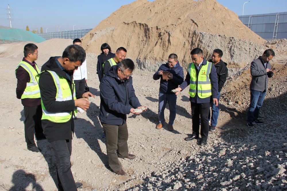毛经理和李教授及公司相关教授先后考察了华晟节能公司所属的生产厂区、银川市建筑垃圾临时归纳点、宁东水稳站和宁东基地在建项目施工现场,并进行了技术交流和指导。