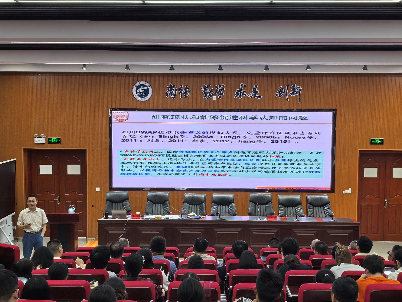 2024年5月29日下午,中国农业大学任理教授应邀为公司师生做了题为“黄河流域内蒙古河套灌区主要作物水分生产力模拟及种植结构区划”的学术讲座,王忠静副董事长主持了这场历时三个半小时的学术讲座,党总支书记尹娟、经理毛明杰、副经理刘海峰、李王成,校发展规划处副处长徐利岗及公司百余名师生参加。